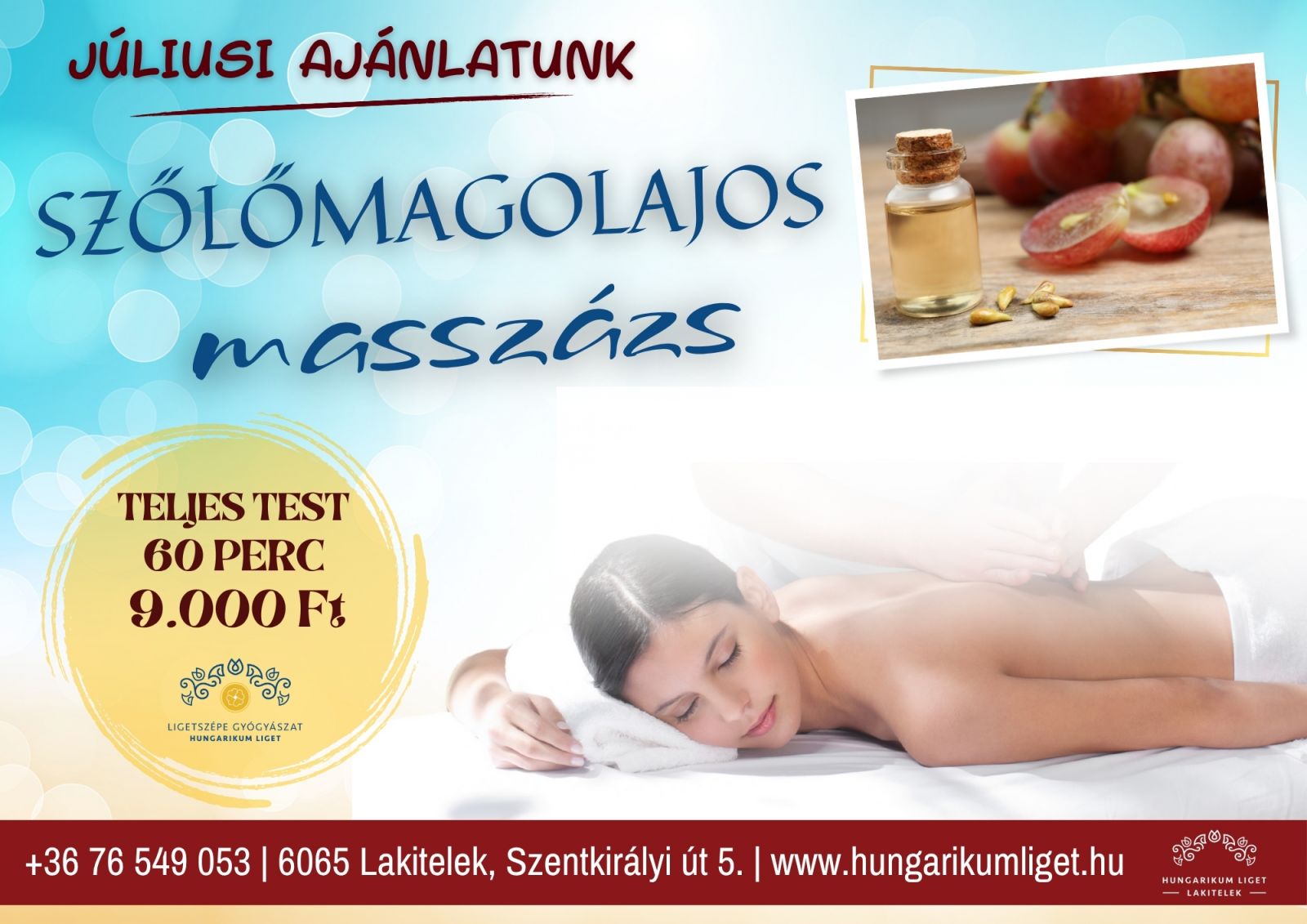 Próbálja ki szőlőmagolajos masszázsunkat a Ligetszépe Gyógyászaton.