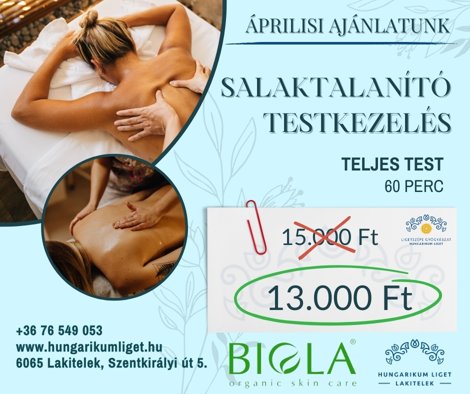 Vegyék igénybe különleges salaktalanító testkezelésünket a lakiteleki Ligetszépe Gyógyászaton, a Hungarikum Ligetben! Ahol nem csak a víz gyógyít!