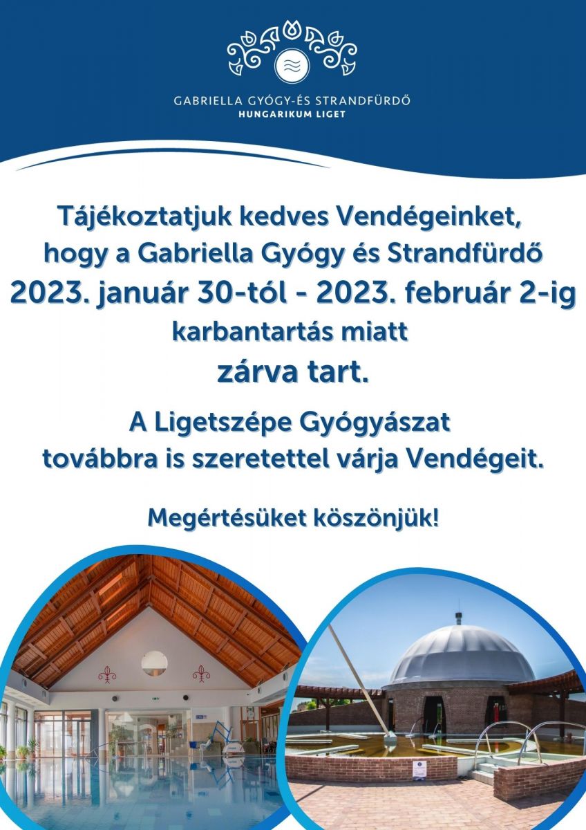 Karbantartás a Gabriella Gyógy- és Strandfürdőben