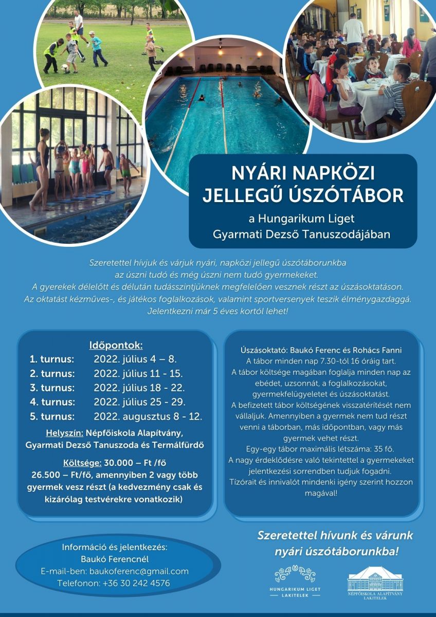 Szeretettel hívunk minden úszni tudó és még úszni nem tudó gyermeket nyári napközis jellegű úszótáborunkba!