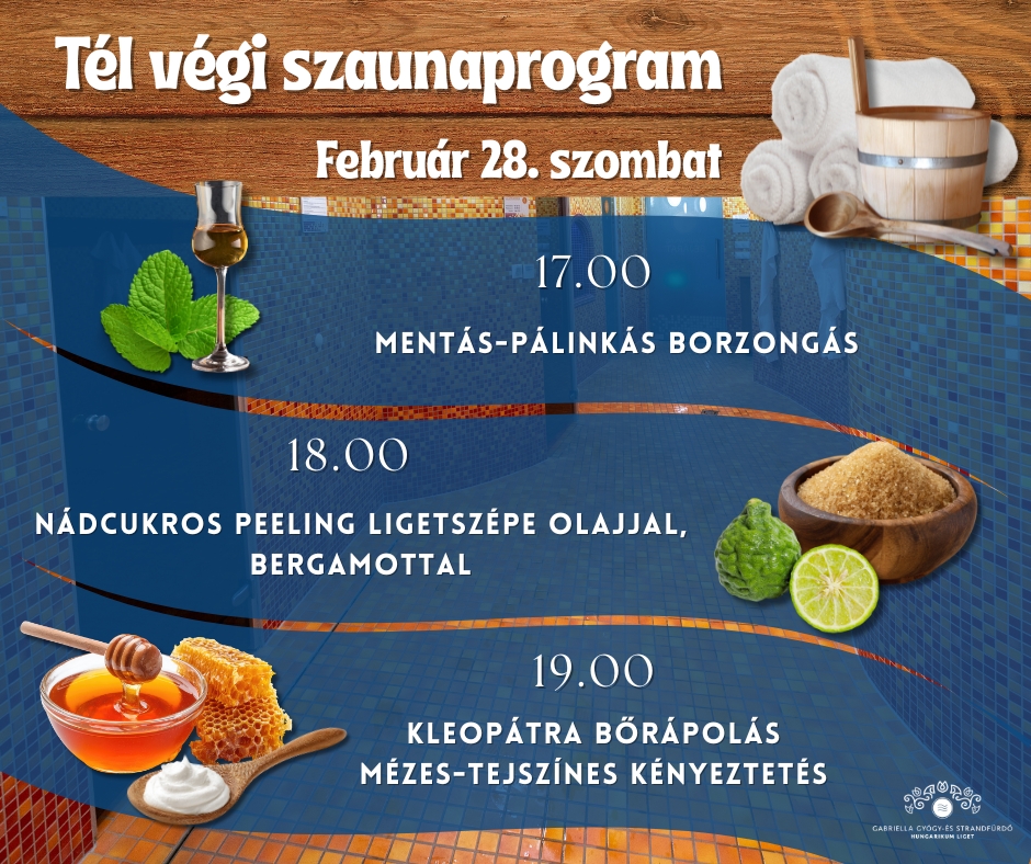 Február 28-án, szombaton, különleges, tél végi szaunaprogrammal várjuk a Gabriella Gyógy- és Strandfürdőbe.