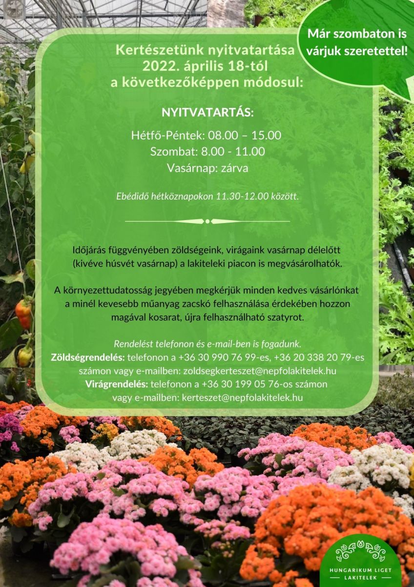 Kollégáink hétfőtől szombatig mindennap szeretettel várják Önöket virág- és zöldségkertészetünkben!