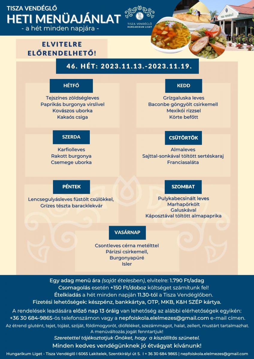 Tisza Vendéglő heti menü ajánlata 2023.11.13.-2023.11.19.