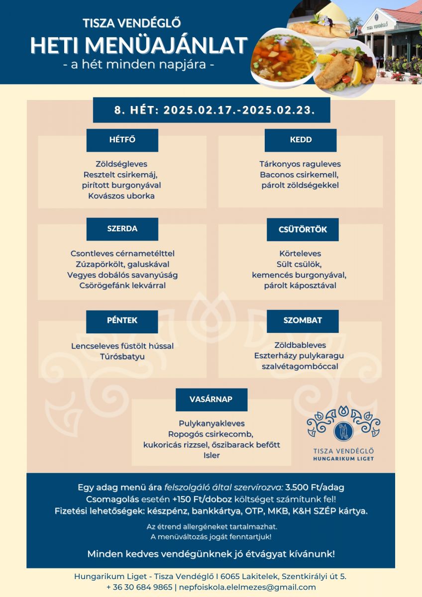 Tisza Vendéglő heti menü ajánlata 2025.02.17.-2025.02.23.