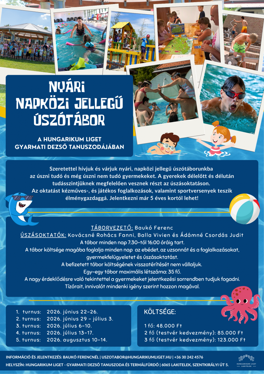 Nyári napközi jellegű úszótábor a Gyarmati Dezső Tanuszoda és Termálfürdőben - 2026.
