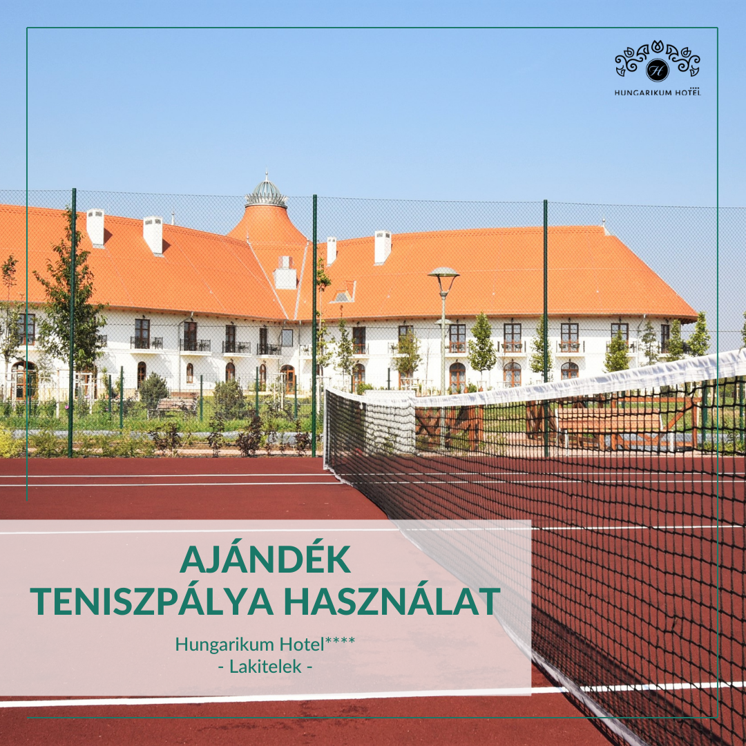 + Ajándék teniszpályahasználat és teniszeszközbérlés (1 alkalommal 2 órára) a Hungarikum Hotel saját teniszpályáján