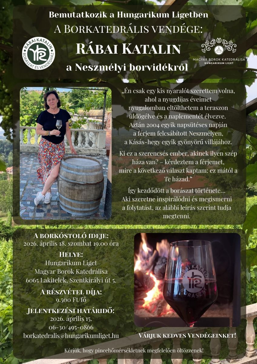 Április 18-án Rábai Katalin borász mutatja be a Neszmélyi borvidék legizgalmasabb különlegességeit a Magyar Borok Katedrálisában.