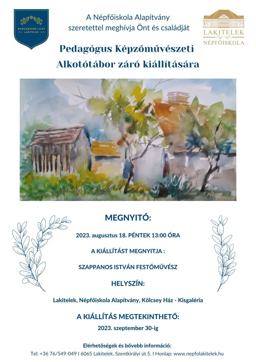 Szeretettel várjuk Önt és Kedves Családját a Pedagógus Képzőművészeti Alkotótábor záró kiállítására.