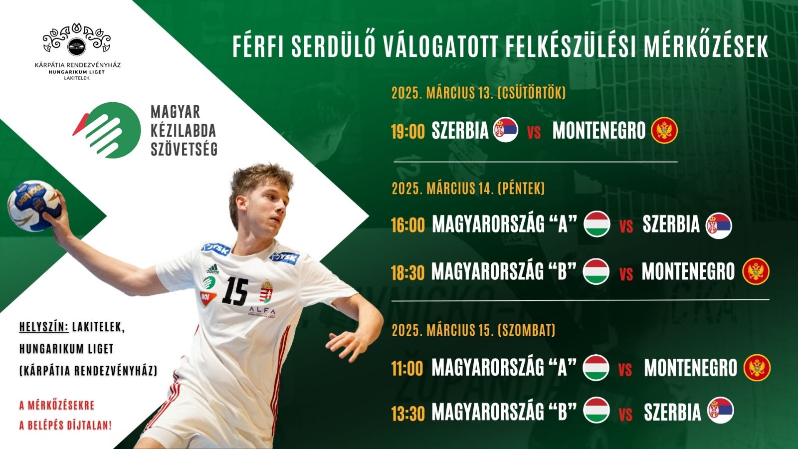 2025. március 13-15. között férfi serdülő kézilabda válogatott felkészülési tornának ad otthont a Hungarikum Liget - Kárpátia Rendezvényháza.