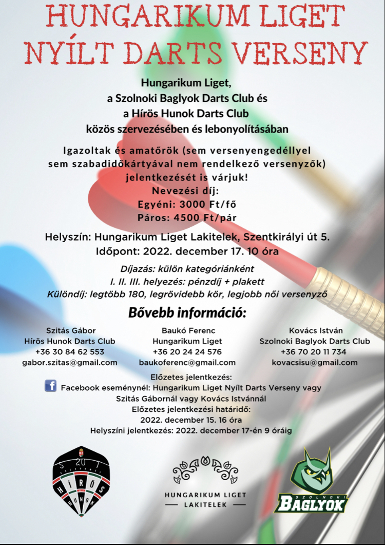Szeretettel várjuk igazolt és amatőr játékosok jelentkezését a Hungarikum Liget Nyílt Darts versenyre!