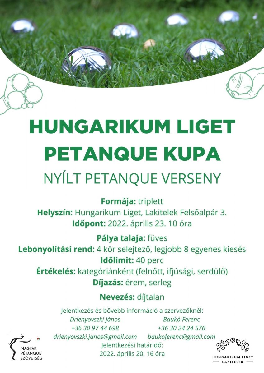 Szeretettel várunk minden kedves petanque kedvelő Vendéget 2022. április 23-án a Hungarikum Liget Petanque Kupára!