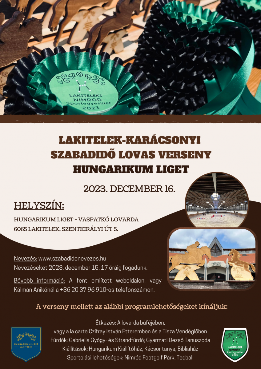 Szeretettel várjuk a lovas sportok kedvelőit versenyzőként vagy nézőként 2023. december 16-án tartandó Karácsonyi Szabadidő Lovas Versenyen!