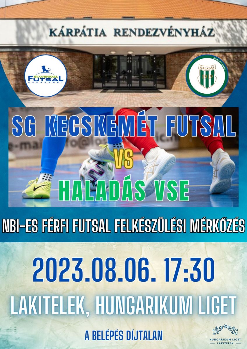 2023. augusztus 6-án 17:30-kor szeretettel várunk minden sportkedvelőt az NBI-es férfi futsal felkészülési mérkőzésre, ahol az SG Kecskemét Futsal és a Haladás VSE csapatok mérik össze tudásukat.