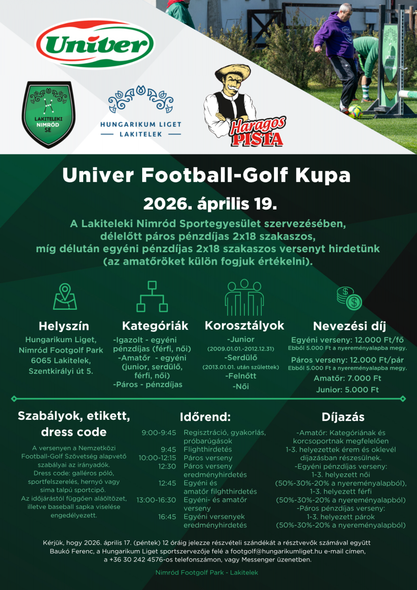 A Lakiteleki Nimród Sportegyesület szervezésében, délelőtt páros pénzdíjas 2x18 szakaszos, míg délután egyéni pénzdíjas 2x18 szakaszos versenyt hirdetünk.